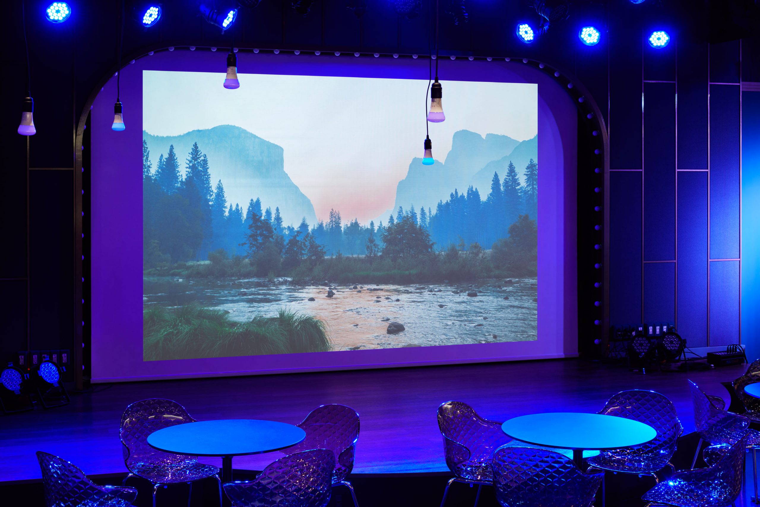 本格的な音響と照明、カラオケを完備したステージ付のホールです。撮影や上映会、セミナー、社内行事や結婚式の二次会等のイベントにオススメです。 【面積】約145㎡【定員】着席80名(立食120名)【設備】ステージ、高感度プロジェクター、大型スクリーン、音響機材、照明機材【金額】1時間55,000円(税込)
