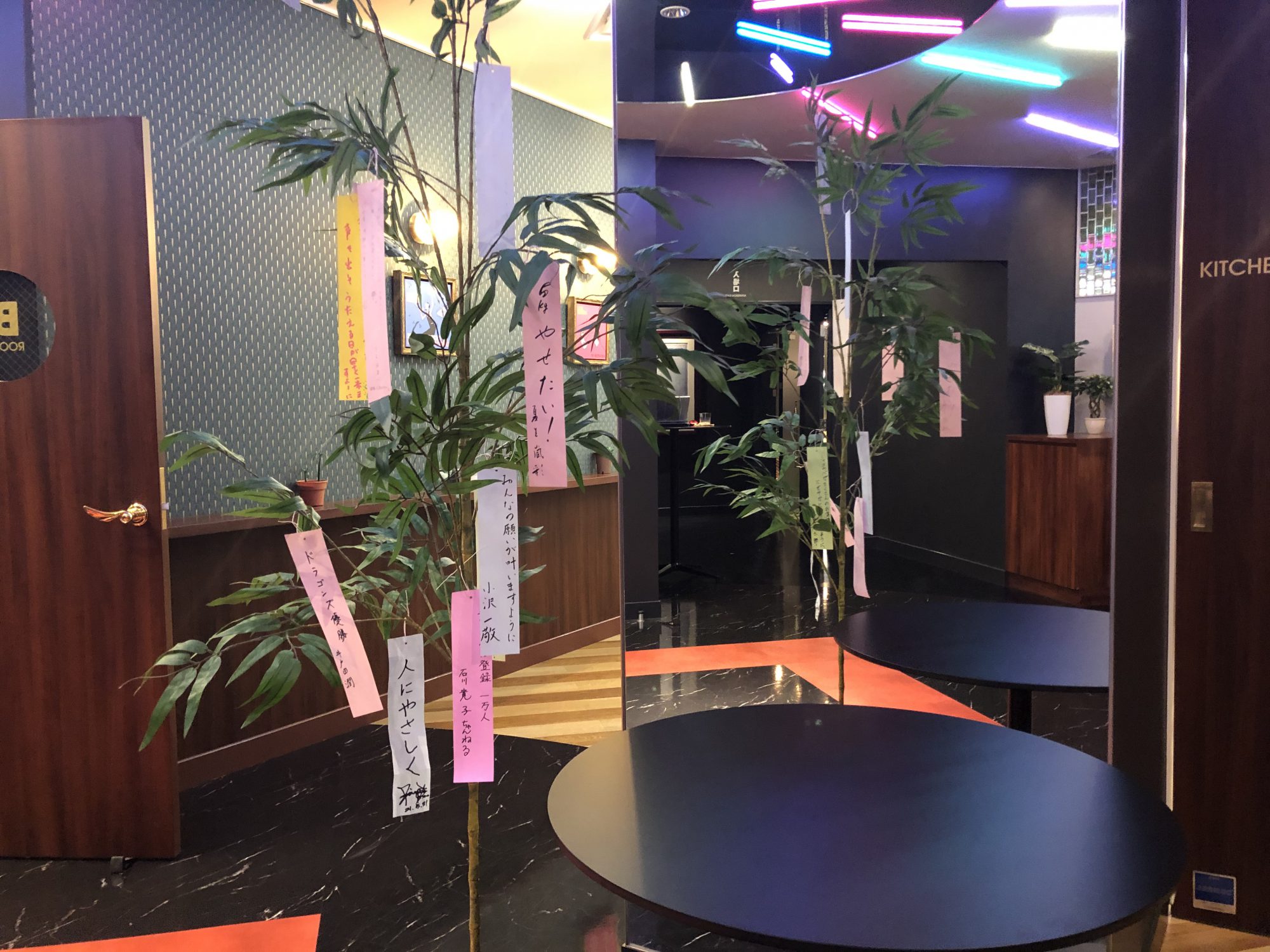 願いを込めて書いた短冊をSHAKOBAの入口に飾っております。