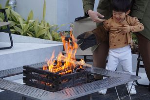 薪割体験にはとても多くのお子さん達が参加。海辺での焚き火ブースはホッと落着く癒しの場となっていました。