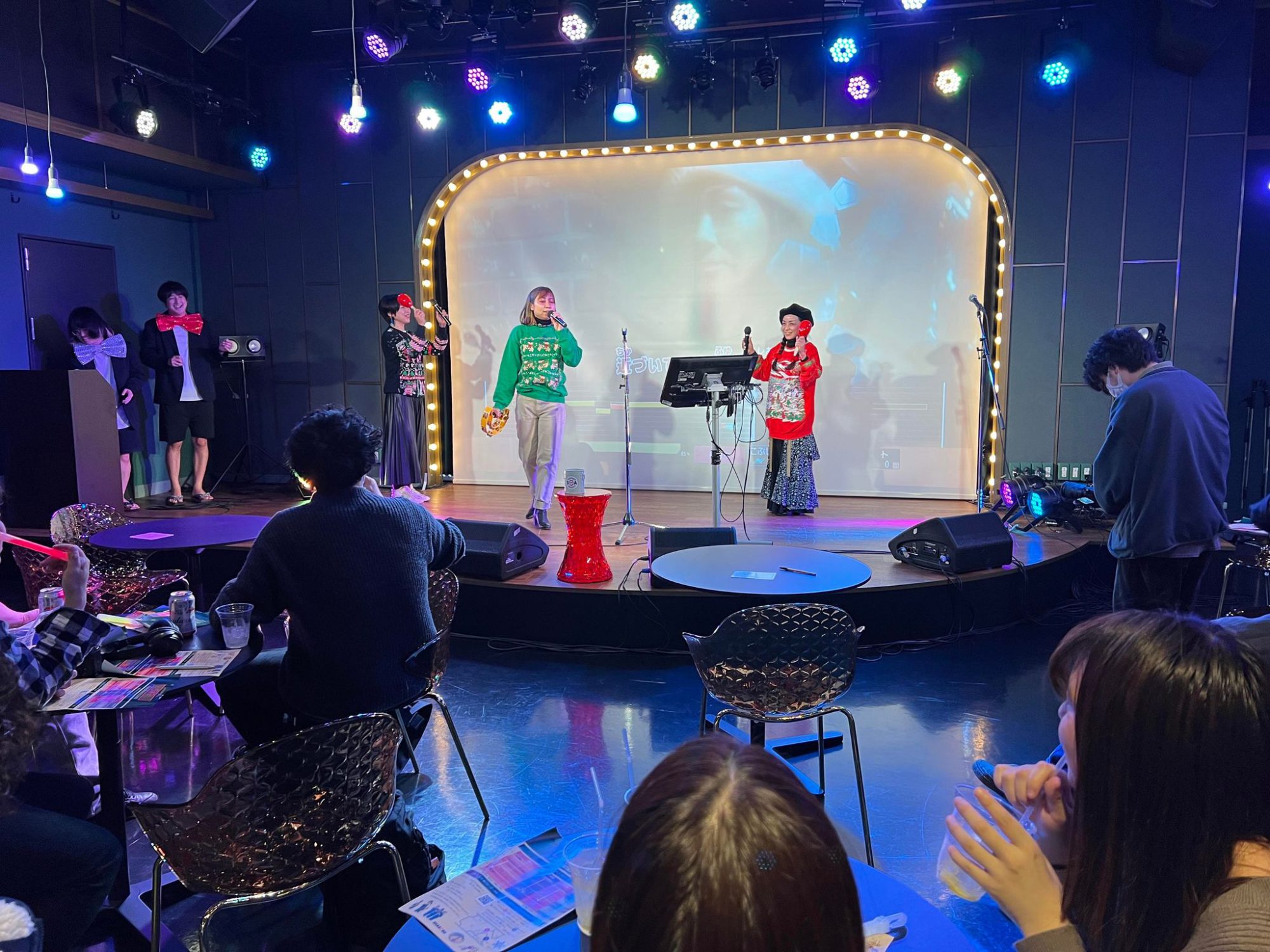 綺羅びやかなステージ上で、演出された音と照明の中で歌うのも良し、個室で仲間同士で盛り上がるも良し、流れてくる曲を口ずさんだり、好きな歌の思い出を語るも良し。