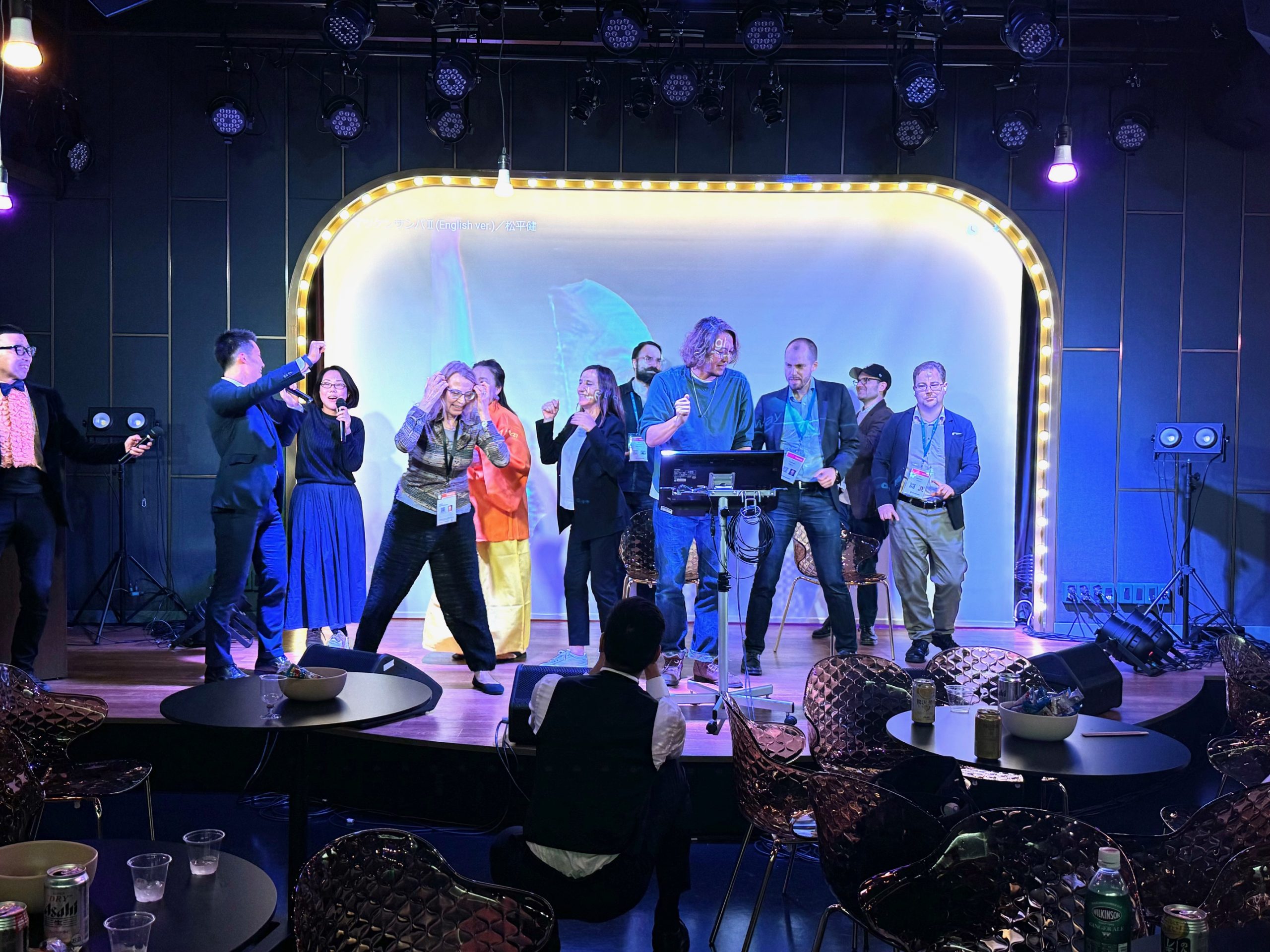 談笑の合間にはなんとステージでカラオケ大会!